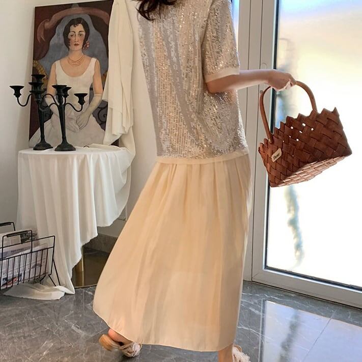 シーズンレスなデザインなので、デニムと合わせてカジュアルにも、サテンと合わせてきれいめにもおしゃれに着こなせます。